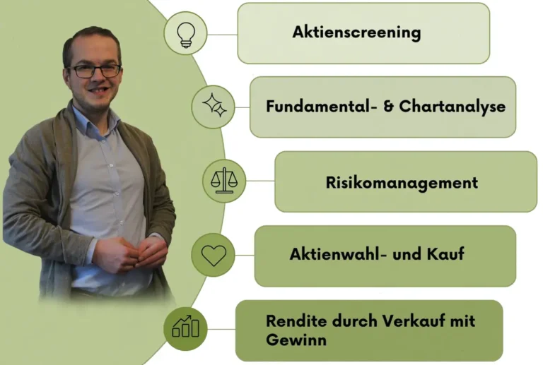 Mit meinem Training triffst du fundierte Entscheidungen an der Börse – ohne stundenlang Theorie zu wälzen.